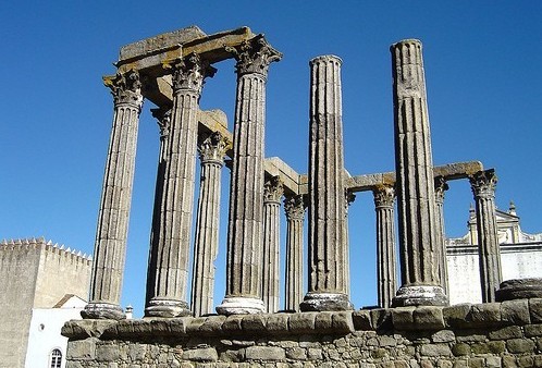 A cidade teve o nome de Ebora Cerealis durante o império romano,