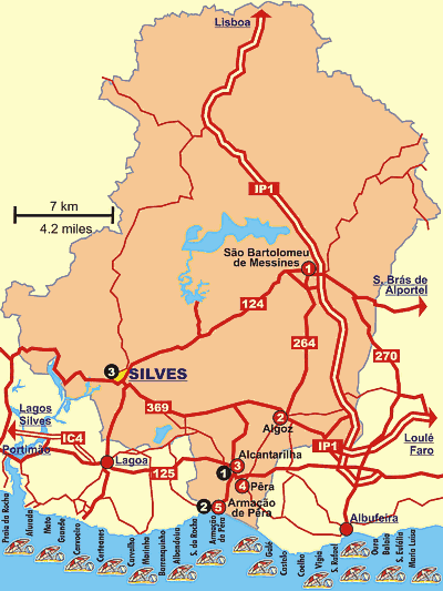 ..........Dos tempos pré-históricos ficaram por Silves e arredores menires e artefactos testemunhando agricultura intensiva e exploração do minério de cobre. A necrópole da Idade do Bronze de Alfarrobeira, na Serra, os menires Neolíticos do Barrocal ou os achados romanos que aumentam na zona Litoral, comprovam povoamento continuado. A 2 km a Oeste da cidade existem(íam) os restos do que teria sido uma importante feitoria do 1º milénio a.C., activa muitos anos depois de Cristo, muito provavelmente chamada Cilpes, com relações comerciais com o Mediterrâneo e seus civilizados povos: fenícios, gregos, cartagineses... Da época romana poderá ser a ocupação urbana na actual colina de Silves. No entanto, foi a conquista muçulmana e a longa presença cultural que aqui manteve (séc. VIII-XIII) que marcaram profundamente a história e facies da cidade...........Fortemente muralhada, povoada por árabes e berberes, foi durante o séc. XI e XII importante pólo cultural e político do al-Gharb al-Andaluz, cidade de poetas e filósofos, como Ibn Ammar ou o rei Al-Mut'amide. Conquistada uma primeira vez em 1189 por tropas cristãs portuguesas comandadas pelo rei Sancho I auxiliadas pelos Cruzados, caiu novamente nas mãos dos Mouros em 1191 e só foi definitivamente conquistada para Portugal em meados do séc. XIII. Logo se tornou a capital de todo o Algarve e a sua sede episcopal e militar. No séc. XV irá ainda participar activamente nas viagens marítimas de descobrimento portuguesas.